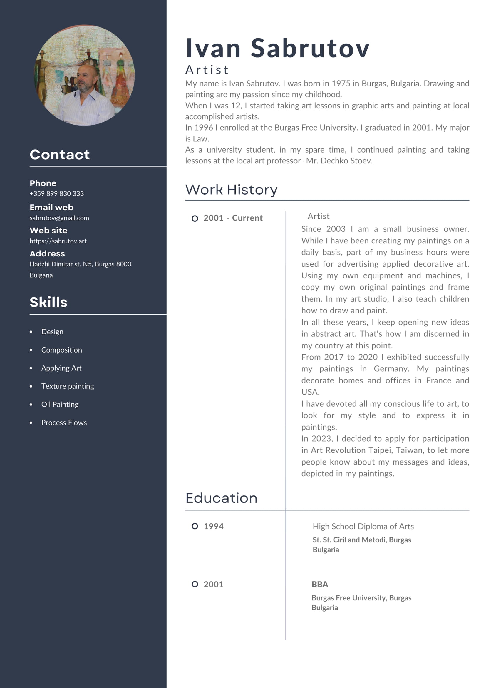 Основни дейности: живопис, графика, дигиталнo масло и скулптура.